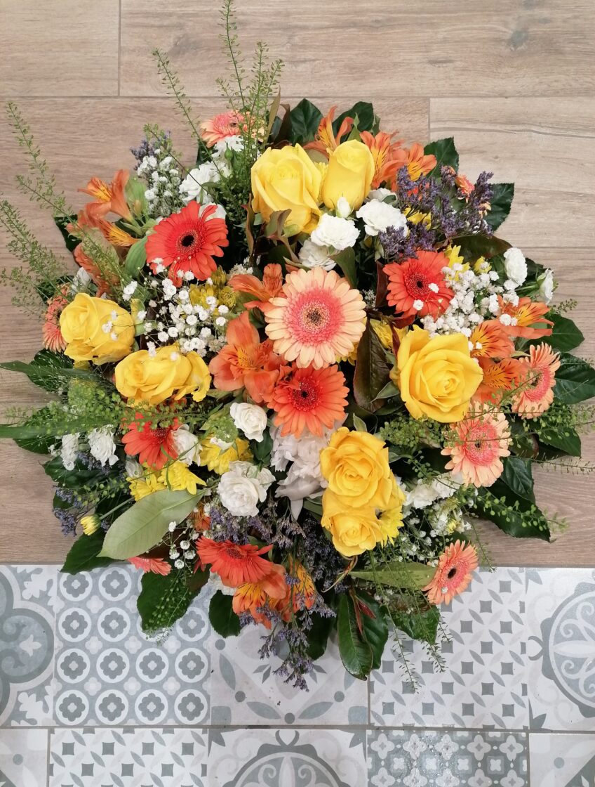 Une composition de fleurs ou de plantes adaptée à votre souhait. Livraison au funérarium ou sur le lieu de cérémonie.